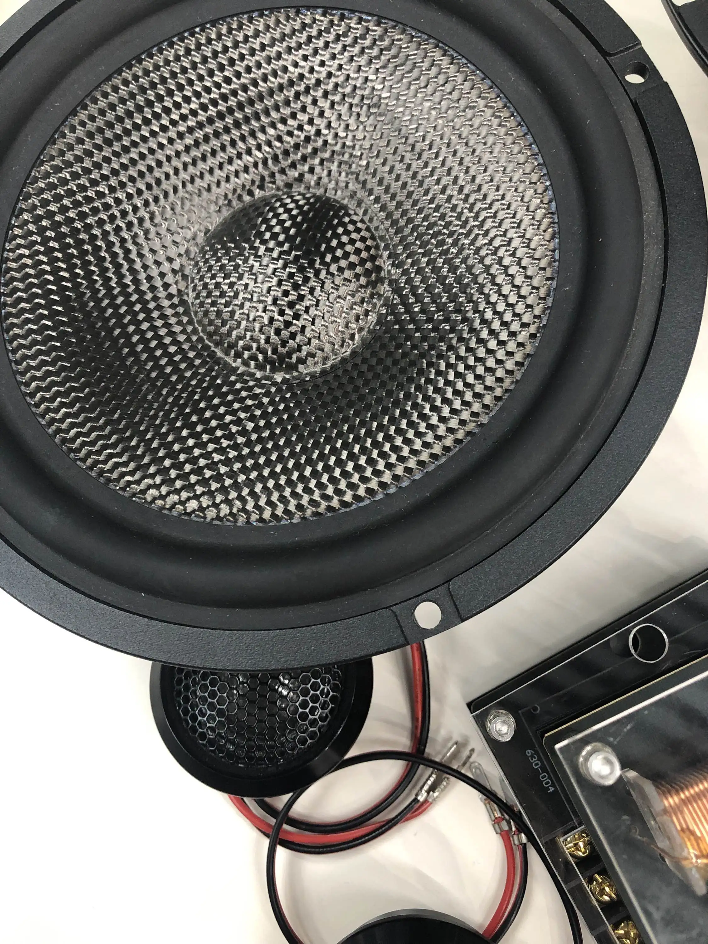 Venta al por mayor 6,5 pulgadas de fibra de carbono de 2 vías altavoz componente # Altavoz del coche # componente altavoz # cuerno de coche